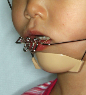 | 目的 | 骨格性反対咬合の治療に絶大な効果のある「上顎前方牽引装置」。基本的に上顎骨の発育能力がある成長期にしか使えません。女子の場合は10歳まで、男子の場合は12歳までが目安となり、低年齢で始めた方が弱い力、短い期間で治ります。 骨格性の反対咬合の場合、3〜4歳くらいからこの装置で治療を始めることもあります。きちんと使用すると早い場合、6ヶ月目くらいから顕著な効果が見られ、上の歯が外側に出てきます。上顎を外側に牽引する反作用で、下顎を後方に押し返しているので下顎の前方への成長発育を抑制する効果もあります。 |