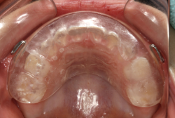 オーバーレイは、取り外し式の装置ですが、この装置単独では矯正力は発生しません。したがってオーバーレイを装着しただけでは、歯の痛みはありませんが上顎前方牽引装置を併用することで矯正力が働くと上顎全体に弱い痛みが生じます。