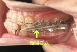 非抜歯の治療の特徴として、上下の歯に自分でゴムを掛ける治療(顎間ゴム)をすることがありますが、この時に「顎関節で音が鳴る、顎が痛い、口が開けにくい」と言った顎関節症状が出ることがありますので、この場合は我慢をせずに担当医にすぐに相談し指示を仰いで下さい。