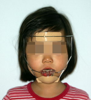 | 目的 | 骨格性反対咬合の治療に絶大な効果のある「上顎前方牽引装置」。基本的に上顎骨の発育能力がある成長期にしか使えません。女子の場合は10歳まで、男子の場合は12歳までが目安となり、低年齢で始めた方が弱い力、短い期間で治ります。 骨格性の反対咬合の場合、3〜4歳くらいからこの装置で治療を始めることもあります。きちんと使用すると早い場合、6ヶ月目くらいから顕著な効果が見られ、上の歯が外側に出てきます。上顎を外側に牽引する反作用で、下顎を後方に押し返しているので下顎の前方への成長発育を抑制する効果もあります。 |