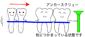 アンカースクリューがあると、引っ張りっこを無視して、目的の歯だけ移動することができます。