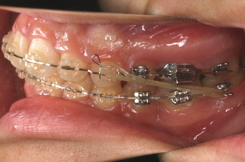 | 利点 | アンカースクリューの使用により他の装置(ヘッドギアや、パラタルアーチ)を使用せずに前歯を下げることができ、継続的に力がかけられるので非常に効果的です。 さらに、症状によっては、歯を抜かなければ矯正ができなかった方でも、抜かずに配列することができるようになりました。 また、今まで外科矯正をしなければならなかった症例の一部が、手術なしでの矯正が可能になりました。 |