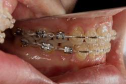マルチブラケット装置は、装置装着時より数日から2週間程度強い不快感疼痛が有ります。非抜歯の治療の特徴として、上下の歯に自分でゴムを掛ける治療(顎間ゴム)をすることがありますが、この時に「顎関節で音が鳴る、顎が痛い、口が開けにくい」と言った顎関節症状が出ることがありますので、この場合は我慢をせずに担当医にすぐに相談し指示を仰いで下さい。