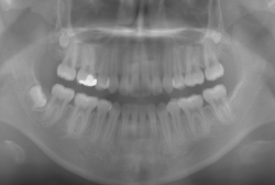 このような症例は、成人してしまうと埋伏歯の反応性が悪く、あまりにも動きが悪い場合は牽引をあきらめて抜歯する場合もあります。歯科医院の検診で親知らず以外の埋伏歯を指摘された場合は、できるだけ早く矯正専門医に御相談下さい。
