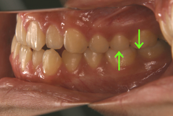 歯の移動の方向性としては、前後的な移動よりも歯の上下動が中心となり歯の根の先端に負担のかかりやすい治療で、歯根吸収のリスクが高まりやすい症状ですので負荷と休止に余裕が必要です。