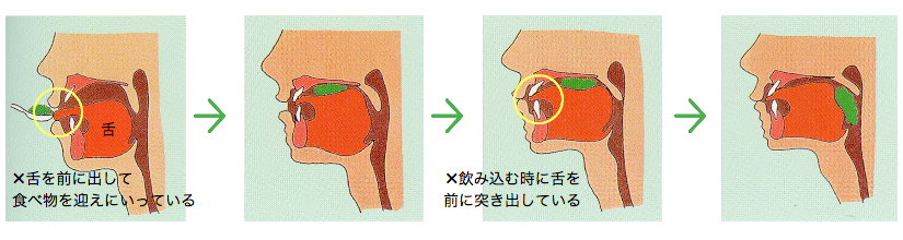 ■ トレーニングで覚えた舌の位置やくちびるの状態を保ち、日常生活の中で、正しい飲み込み方を習慣にする
